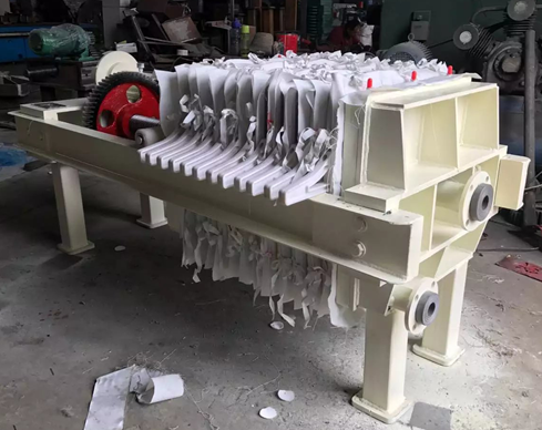 檢查板框壓濾機(jī)的電機(jī)是否完好,有無(wú)過(guò)熱運(yùn)行情況。如電機(jī)損壞,則應(yīng)沿著電機(jī)的負(fù)荷回路由后向前逐一檢查電機(jī)接線端子、電纜、熱繼電器、接觸器等部位的接線和元器件自身,直到找出故 障原因,排除故障并修復(fù)損壞的電機(jī)。若未發(fā)現(xiàn)電機(jī)問(wèn)題,則應(yīng)考慮調(diào)壓閥是否完好。板框壓濾機(jī)運(yùn)轉(zhuǎn)是通過(guò)液壓系統(tǒng)產(chǎn)生一個(gè)強(qiáng)大的動(dòng)力作用于濾板上,只有這樣才能讓個(gè)個(gè)分開(kāi)的濾板組成設(shè)備工作 時(shí)必要的部分——過(guò)濾室,也_是說(shuō)一些數(shù)量的濾板_在強(qiáng)大壓力作用下工作,當(dāng)這個(gè)壓力無(wú)意間_出了濾板的承受范圍時(shí)候,濾板自然_會(huì)破裂損毀。