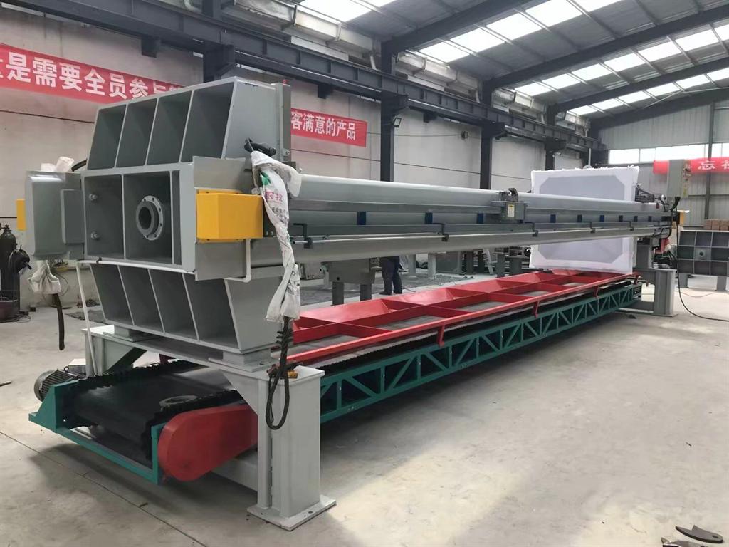 板框壓濾機(jī)的濾板和濾框都由壓緊裝置壓緊,同時(shí)在濾板和濾框的部位設(shè)有把手,用于支撐整個(gè)濾室結(jié)構(gòu)。板框壓濾機(jī)的濾板和濾框之間所安裝的濾布,除了承擔(dān)過濾的工作之外,還能起到密封墊片的作用。