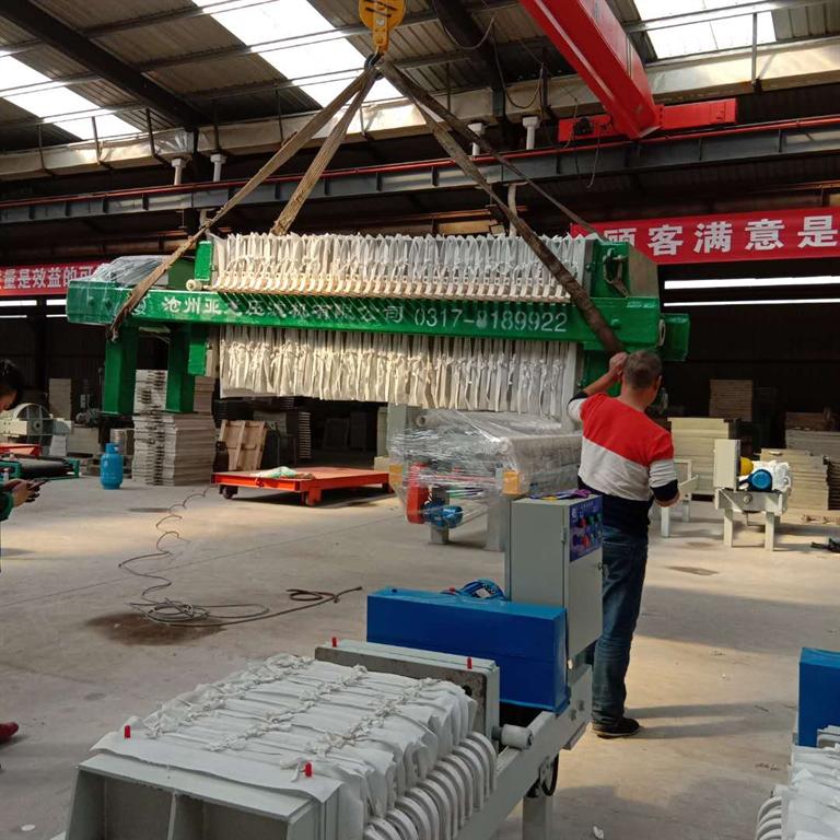 板框壓濾機對于濾渣壓縮性大或近于不可壓縮的懸浮液都能適用。適合的懸浮液的固體顆粒濃度一般為10%以下,操作壓力一般為0.3~1.6兆帕,特殊的可達3兆帕或_高。過濾面積可以隨所用的板框數目增減。板框通常為正方形,濾框的內邊長為 200~2000毫米,框厚為16~80毫米,過濾面積為1~1200㎡。板與框用手動螺旋、電動螺旋和液壓等方式壓緊。板和框用木材、鑄鐵、鑄鋼、不銹鋼、聚丙烯和橡膠等材料制造。