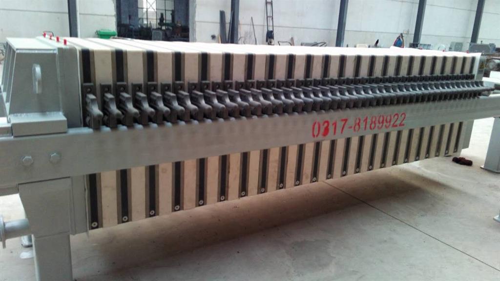 而隔膜壓濾機濾板采用中間進料分離管道,這也是有一個明顯的優點_是能使隔膜壓濾機在過濾過程中了,形成的濾餅能夠均勻的在濾板中間形成,形成的非常的工整,利用隔膜壓濾機的二次擠壓。如果采用半角進料分離管道,不僅增大了濾餅形成不規則的原因,而且也減少了進料量,從而影響隔膜壓濾機效率。